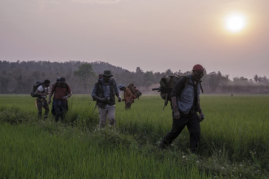 Da 5 Bloods (for at least half of its 155-minute runtime) absolutely overflows with jokes, visual humor, allusion, puckish self-reference and meta-fictional asides.
